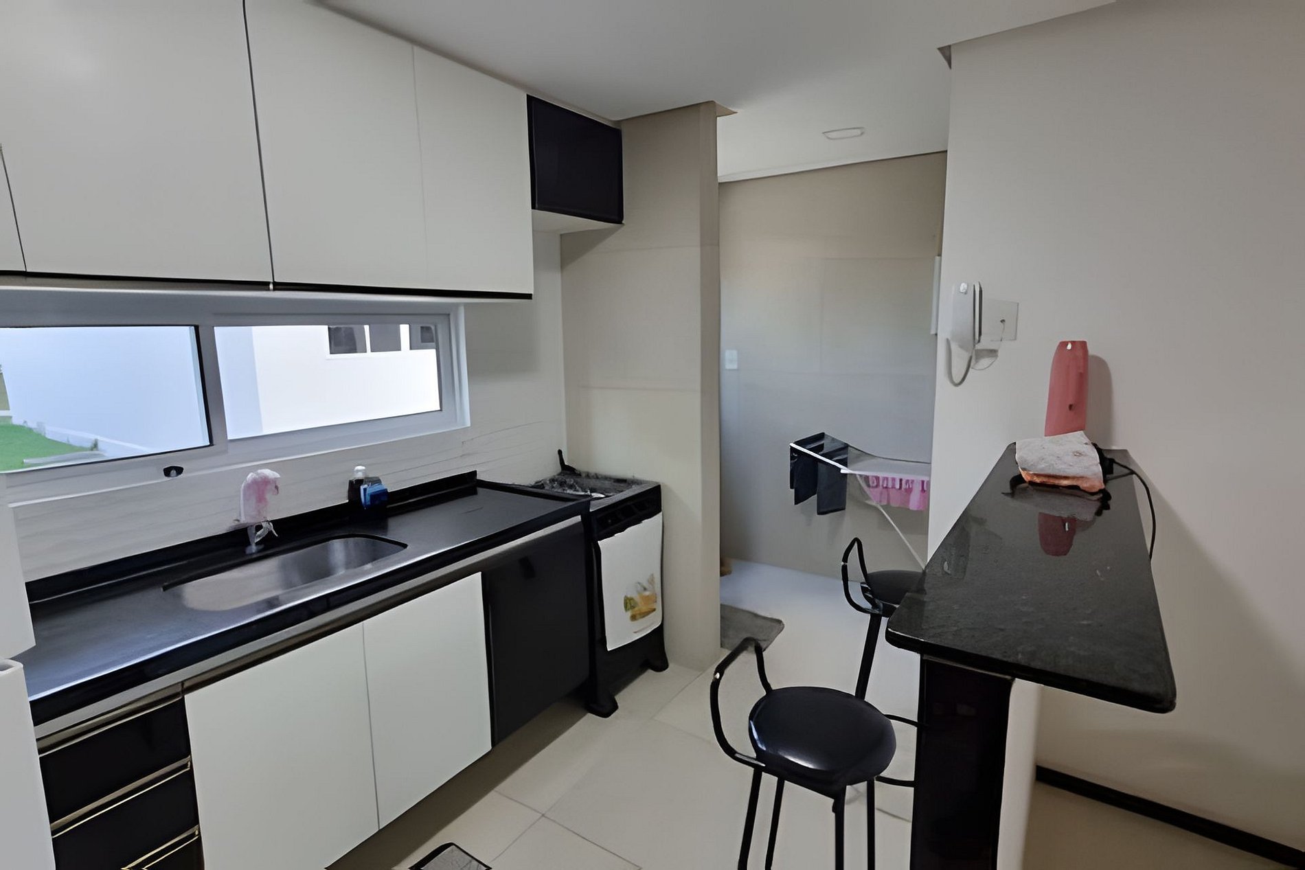 Cozinha Completa à Disposição: A cozinha é totalmente equipada com fogão, geladeira, micro-ondas e todos os utensílios necessários para que você possa preparar suas refeições favoritas e se sentir em casa.